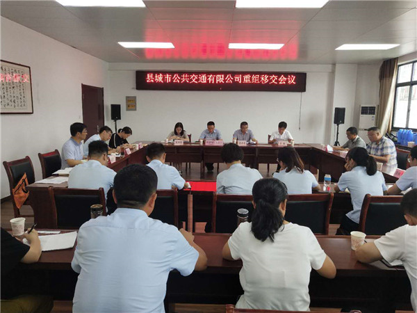 6月15日下午,华体会网页版登录入口党委书记、董事长洪筱明主持召开歙县城市公共交通有限公司重组移交会议,县交通运输局党组书记、局长吴会乐,县国资委及县公交公司部分职工参加了会议。