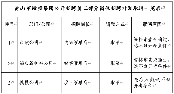 华体会(中国)-华体会(中国)公开招聘员工的报名和资格初审工作现已全部结束,根据公司《招聘公告》要求,此次招聘因部分岗位不具备开考条件,经研究决定予以取消。具体岗位招聘计划取消情况如下: