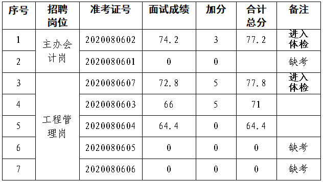 根据《华体会(中国)-华体会(中国)招聘考试公告》,面试工作已于2020年8月8日结束,现将考生的成绩予以公告: