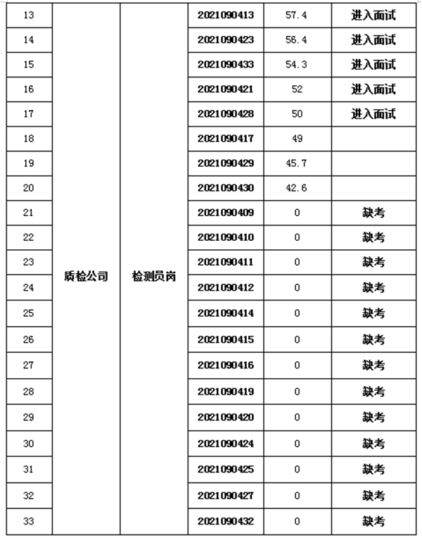 根据《华体会网页版登录入口招聘员工考试公告》,笔试工作已于2021年9月4日上午结束,现将笔试成绩及进入面试人员名单公布如下: